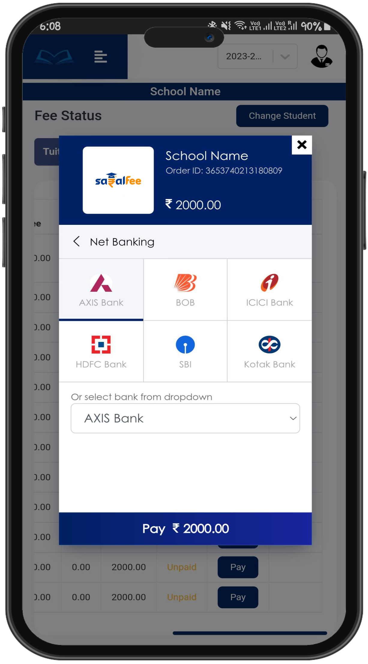 SaralFee comes with a ready-made student portal through which your students pay their fees to you. SaralFee allows you to customize the student payment portal to match your institute's identity & style. You can add your own logo, change the colors & even integrate it inside your own website.